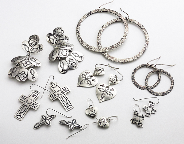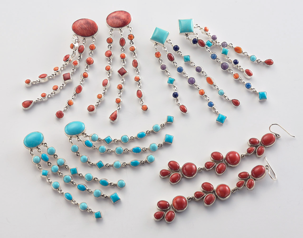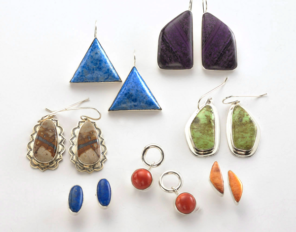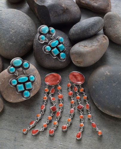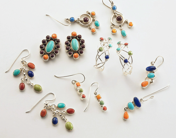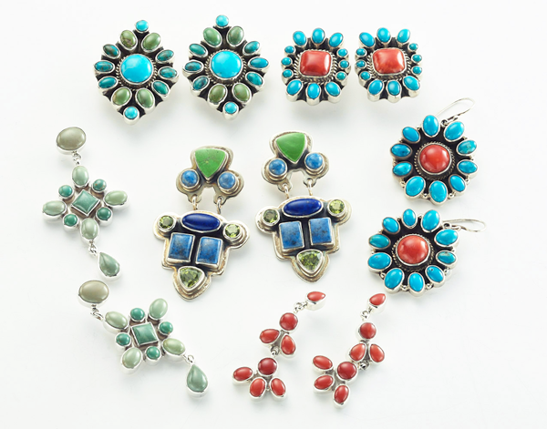 Workmanship second to none. Choices? Tremendous. And the artistry, whether traditional or contemporary, is fresh and arresting. This is Kevin Randall�s largest jewelry group, offering qualified wholesale buyers all the options: French Wires, Clip-ons, Posts, All Silver, Single Stone, Multi-stones, and Bold Gem Clusters. Handmade in Albuquerque by Native Americans; a must-have accessory for virtually all customers.